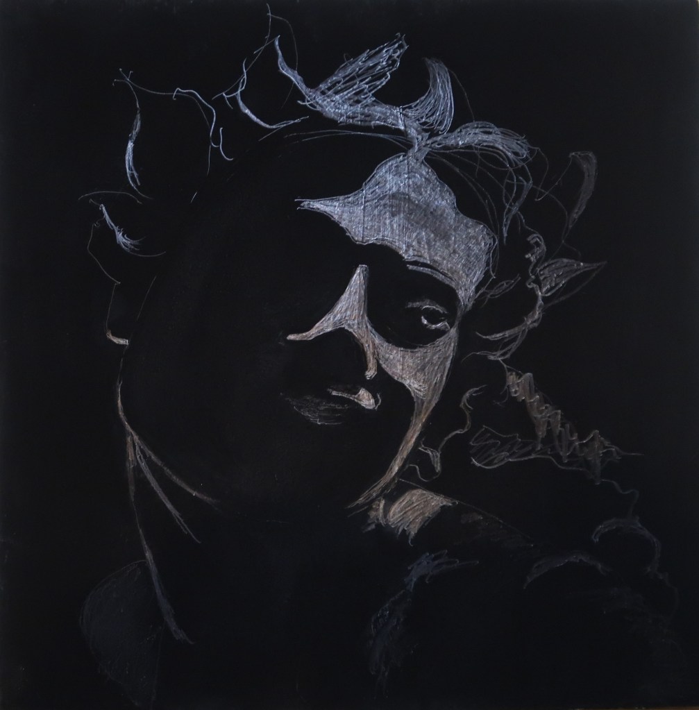 Drawn with 4B pencil on a Musou Black ground.
