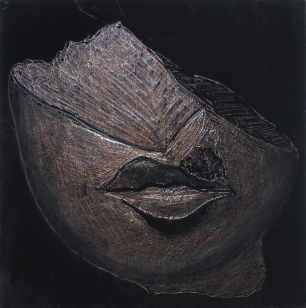 However deep art is a departure from that pursuit of progress. We no longer have faith that progress will solve the world’s ills. In fact progress chooses to abet capitalism. A world of total surveillance is portended, reinforced by AI and hostile to procreation in a post-industrial world. Progress has become a suspect word, and therefore deep art retreats from progress, not into nostalgia for a previous way of making art, but into an ideal of degrowth, epitomised by turning away from profit-motivated expansion on an ever larger scale. Instead, it focuses in on a realm where the accidental prompts suggestion. However abstract it might initially appear, a piece of deep art invites being looked into more deeply. It is like a Rorschach test – it is open to suggestion. I reiterate: deep art is a departure. It is alchemy. Its primary aim is for the artist to lose consciousness of self in the engrossment of making art. It looks into the tea-leaves. It makes something out of chaos. It welcomes quantum connections.