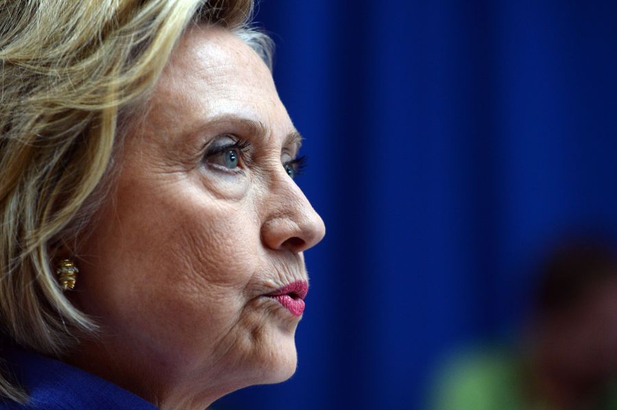 EXETER, NH – AUGUST 10: Democratic presidential candidate Hillary Clinton takes questions from reporters following a town hall meeting at Exeter High School August 10, 2015 in Exeter, New Hampshire. Clinton answered questions about Donald Trump’s recent comments regarding women. (Photo by Darren McCollester/Getty Images) *** Local Caption *** Hillary Clinton