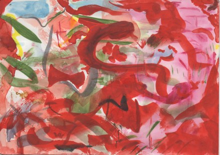 Project started mid-March 2020. I took the sheets used as pallets for my figurative water-colours and decided to paint them, while being limited to using only one colour when painting on top of any one pallet. I deliberately don’t use the word palette. Conjures up French wooden plates with a hole for the thumb. My smallish side-sheets of cardboard are too humble for that. Call it poetic licence.