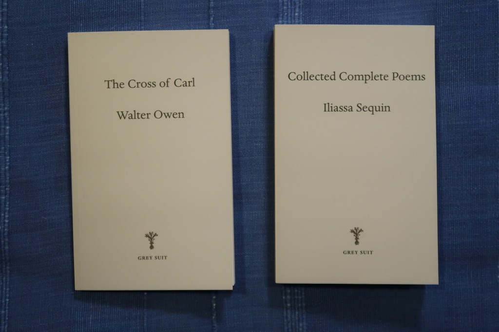 There are two new publications by Grey Suit Editions UK. Collected Complete Poems by Iliassa Sequin and The Cross of Carl by Walter Owen.