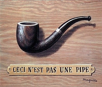 Magritte would have been thirty when this book appeared, and his biographers tell me that he was a visitor to the home of Edward James in London. Edward James was reputedly fathered by the Prince of Wales (later Edward VII). He was a patron of the surrealists. Salvador Dali put James in touch with Magritte, and thus it was that James hosted Magritte for three weeks at his home on 35 Wimpole Street, in February and March 1927, the year in which An Experiment with Time came out from Faber. The book was popular, and Edward James would certainly have had a copy of it in his library. In certain versions of Ceci N’est Pas Une Pipe by Magritte, the words are depicted as a label, as if to a painting – here painting and label amount to a picture within a picture. Magritte also signs this work, adding a further layer, a layer of self-consciousness. Well-known versions of this work, do not have a signature, and I might have my doubts as to the authenticity of this attribution, were it not for the fact that on the following page Dunne goes on – A definite image of a particular wooden pipe-bowl may pertain, on one side, to the generic image ‘pipe’, and, on another, to the generic image I call ‘grained wood’.