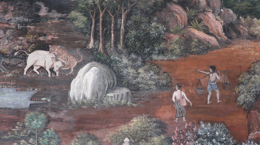 The Ramakien mural surrounding Bangkok’s Emerald Buddha Temple
