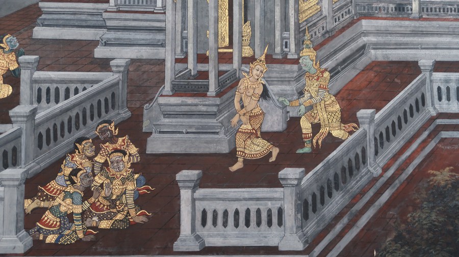 The Ramakien mural surrounding Bangkok’s Emerald Buddha Temple