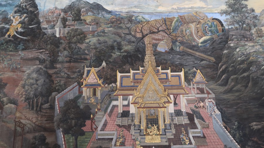 The Ramakien mural surrounding Bangkok’s Emerald Buddha Temple