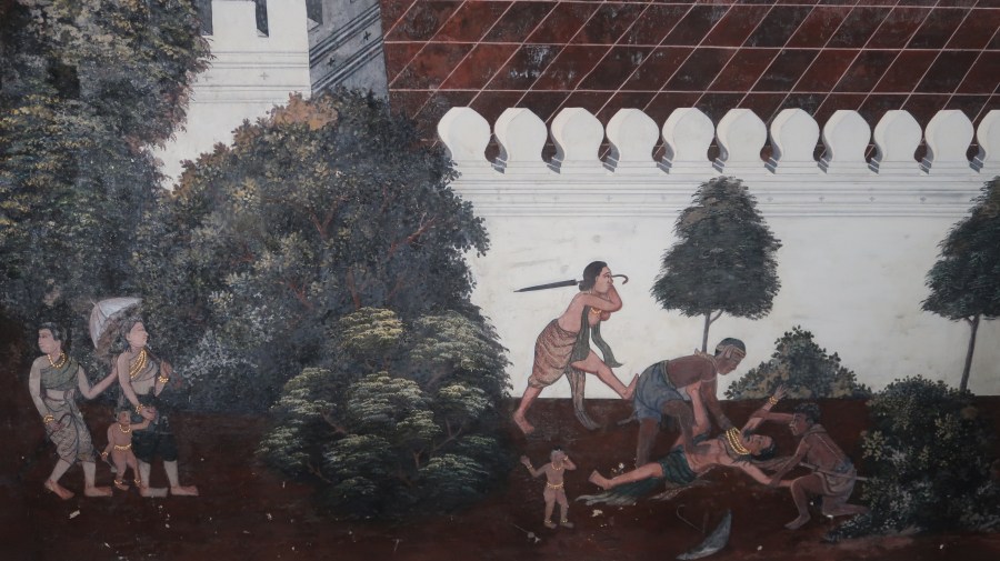 The Ramakien mural surrounding Bangkok’s Emerald Buddha Temple