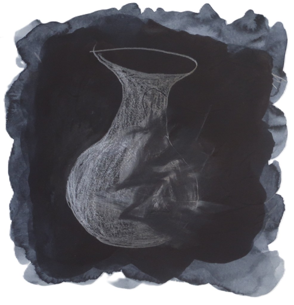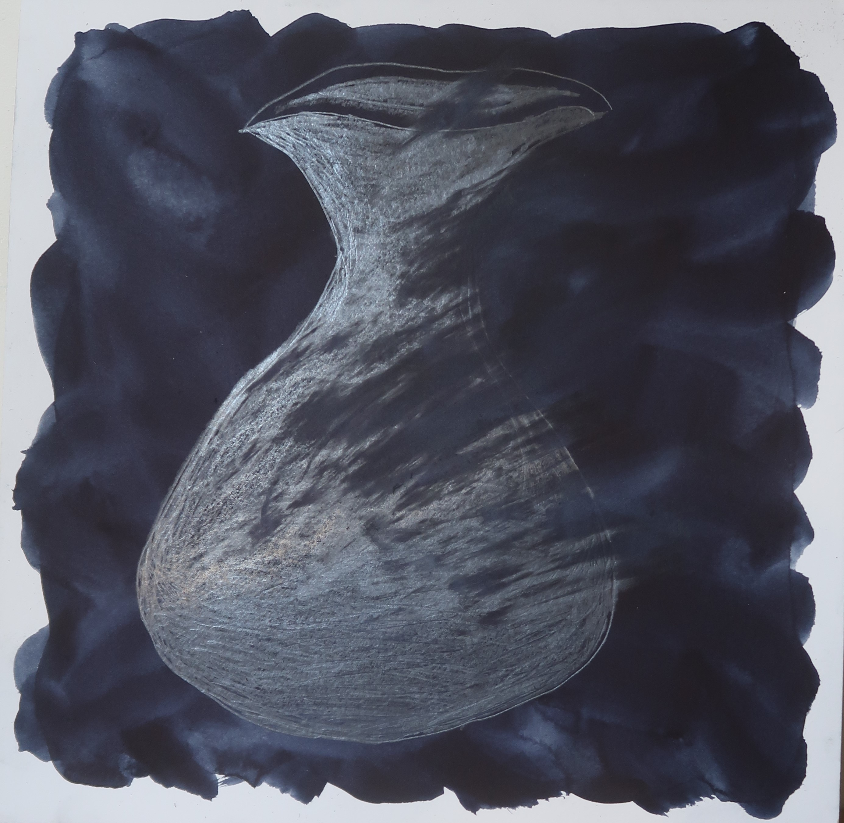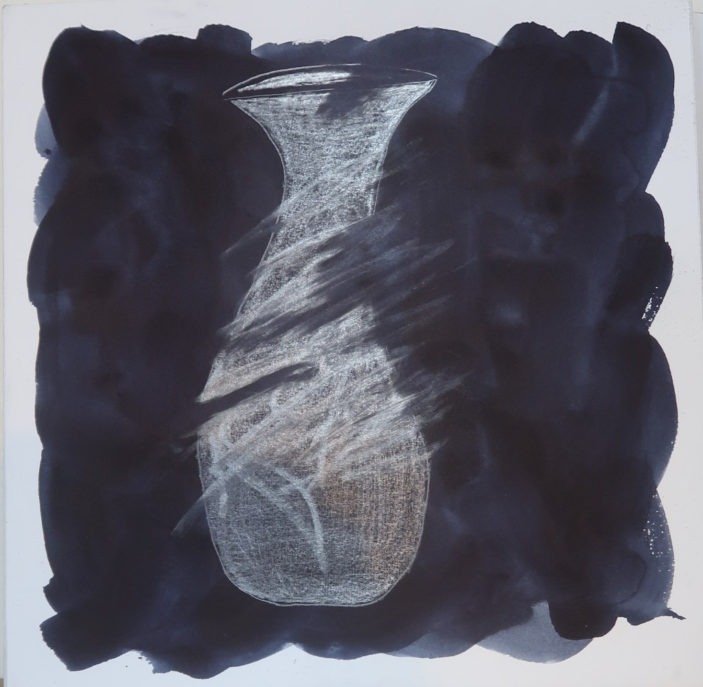 Several drawings done with the eyes closed. Erasure on vases done with the eyes closed.