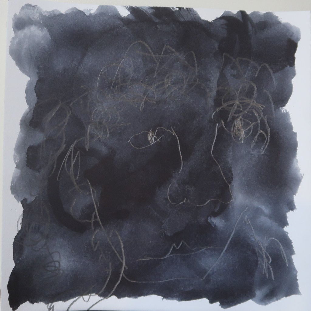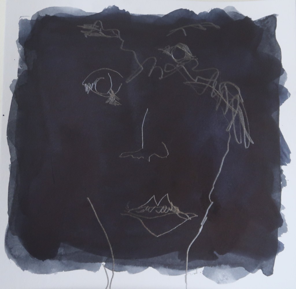 Recent developments: drawing in lead pencil over indigo/black paint.