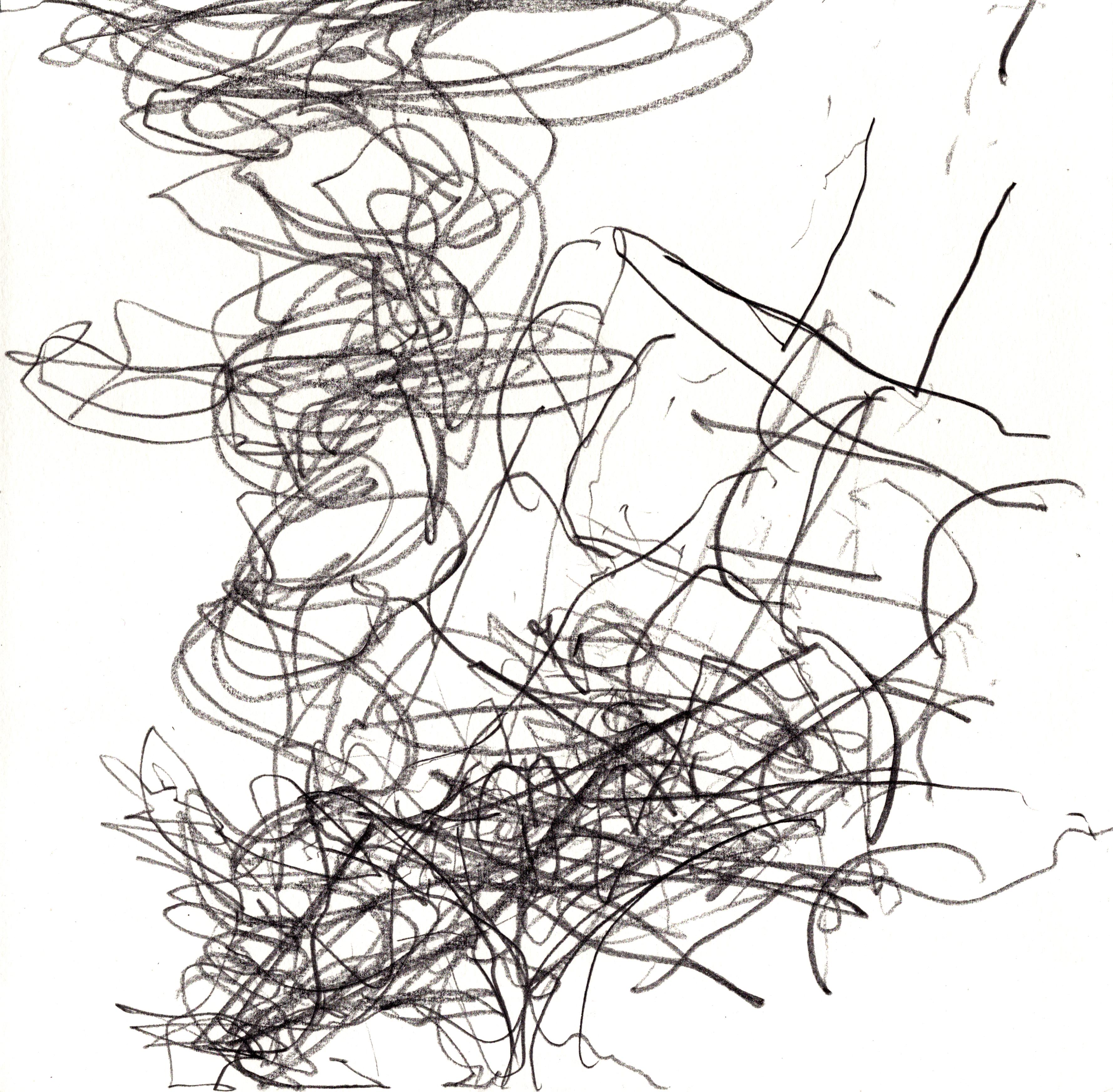 I don’t do modern art, I do deep art. Unlike those modernists who derived abstraction from figuration – Mondrian for instance – I begin from chaos and just see how far I can get towards figuration – the precursor for this, among others, being Victor Hugo. The subject is important to me, in this case a masted ship being swallowed by a water-spout. Drawn with my eyes shut and an A4 pencil in each hand…