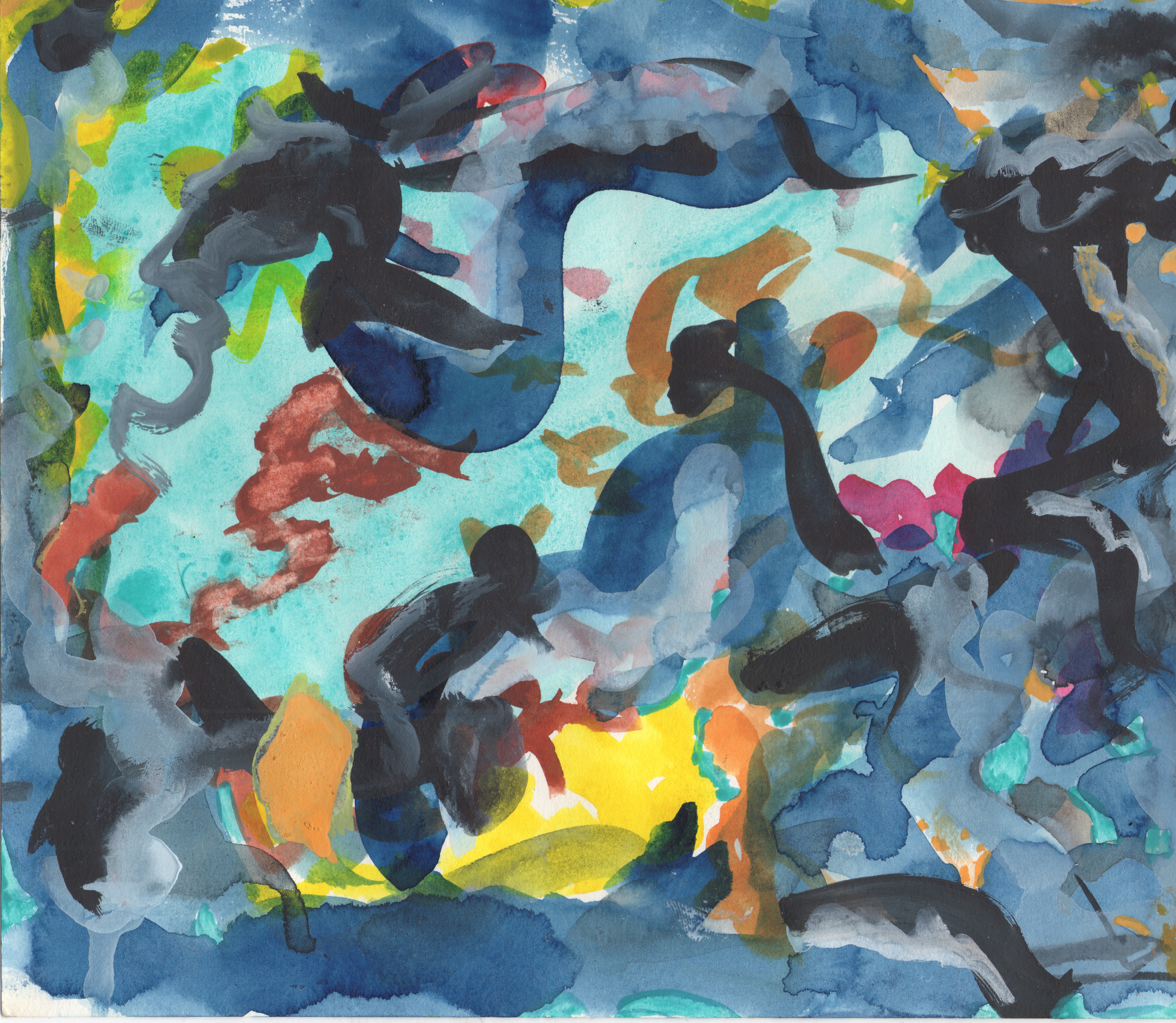 I consider as ‘abstract’ my writings and paintings which are generated by some conceptual or plastic process – such processes may suggest narrative or figurative possibilities but these are incidental rather than deliberate. The paintings which accompany these poems are not intended to illustrate the text, rather they are juxtaposed with the text, and any connection between text and image is again incidental. I feel that my notion of abstraction is a reversal of a modernism that moves away from the figurative into abstraction, a reversal of language departing from narrative to find release in syntax. Rather, I begin from some chaotic concept, then allow accident and inconsistency to take me wherever the poem finds its route, which may well prompt a sense of meaning. I readily invite the reader to invent the ghosts of stories, glimpses of scenes discovered by the process. (Prefatory statement)