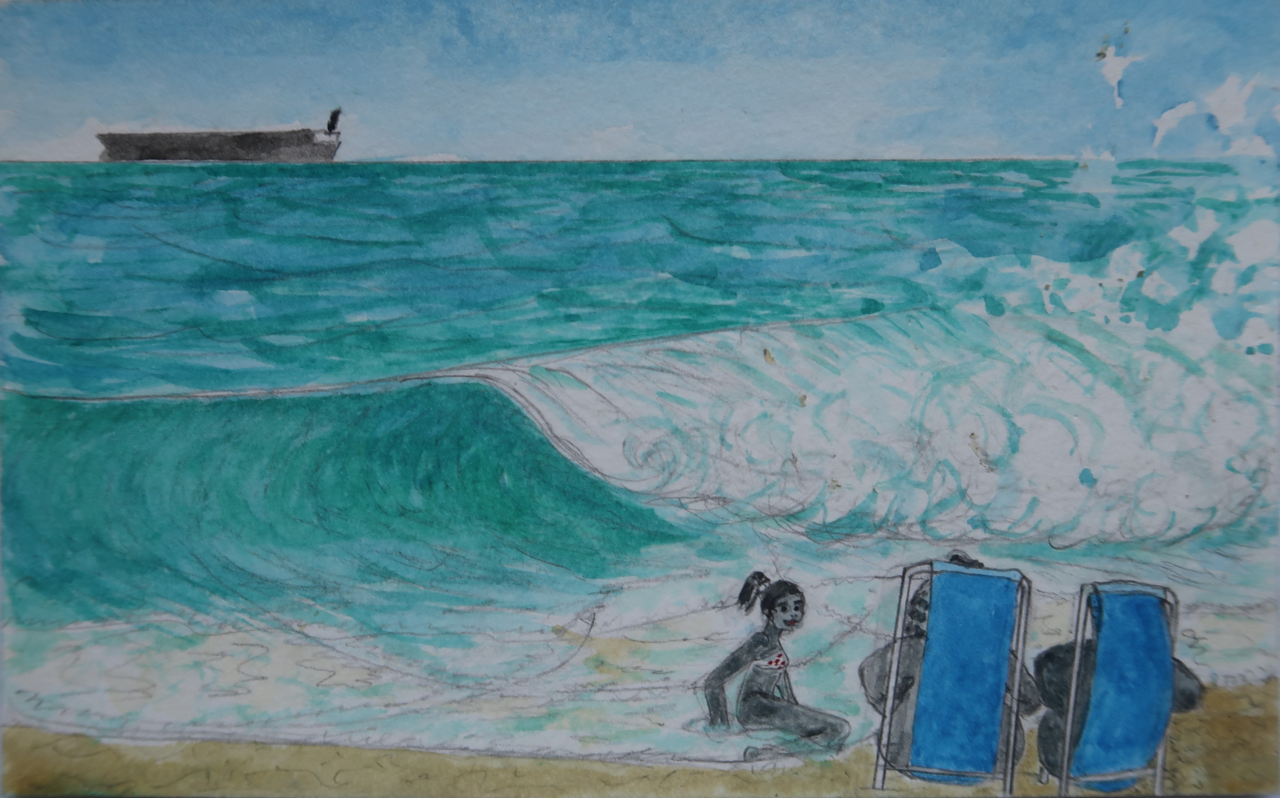 When the wave knocks her down