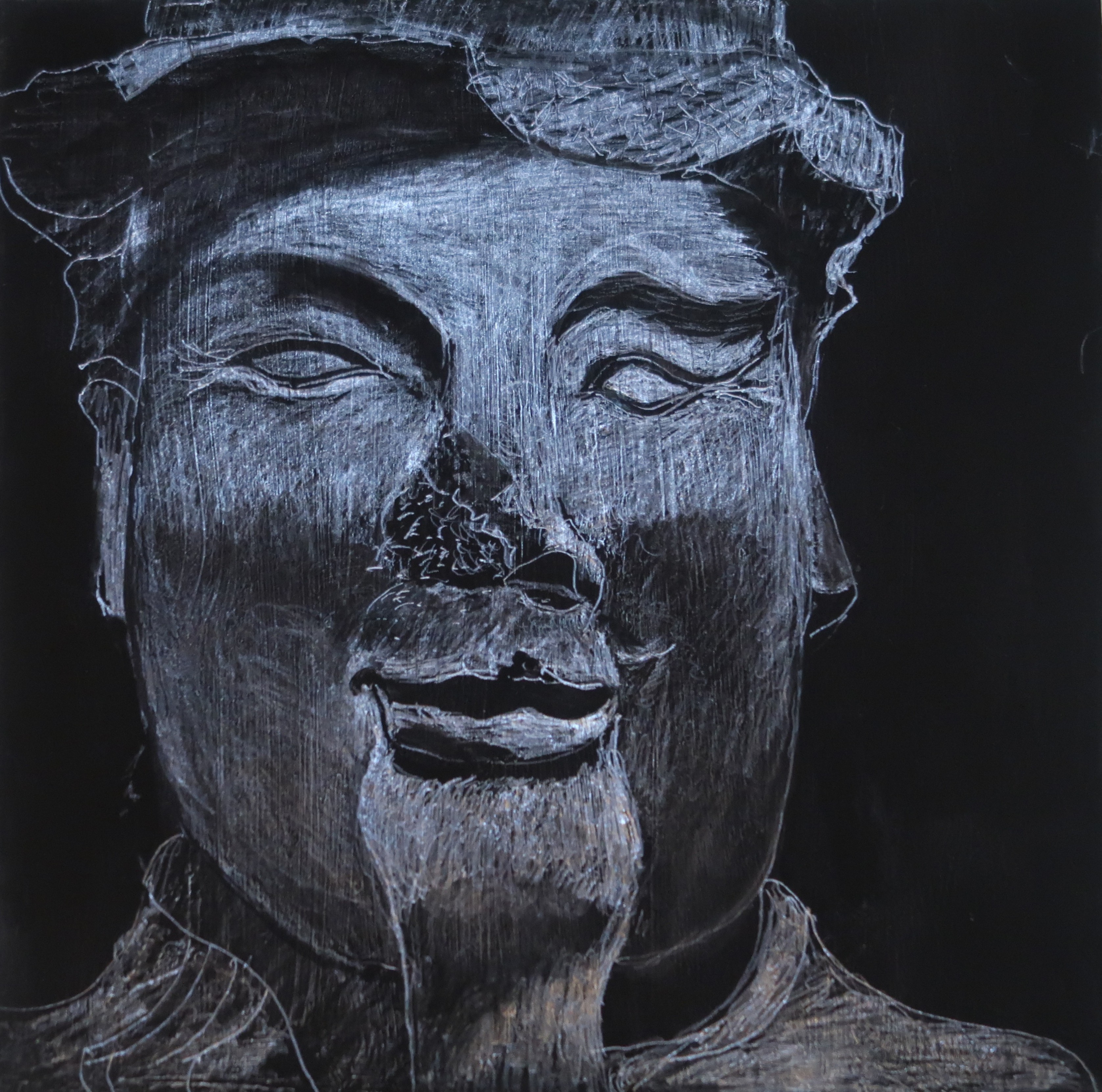 However deep art is a departure from that pursuit of progress. We no longer have faith that progress will solve the world’s ills. In fact progress chooses to abet capitalism. A world of total surveillance is portended, reinforced by AI and hostile to procreation in a post-industrial world. Progress has become a suspect word, and therefore deep art retreats from progress, not into nostalgia for a previous way of making art, but into an ideal of degrowth, epitomised by turning away from profit-motivated expansion on an ever larger scale. Instead, it focuses in on a realm where the accidental prompts suggestion. However abstract it might initially appear, a piece of deep art invites being looked into more deeply. It is like a Rorschach test – it is open to suggestion. I reiterate: deep art is a departure. It is alchemy. Its primary aim is for the artist to lose consciousness of self in the engrossment of making art. It looks into the tea-leaves. It makes something out of chaos. It welcomes quantum connections.