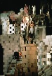 In this performance building and rebuilding, creating and dismantling created a never-ending spectacle; on occasion entombing the performers.
